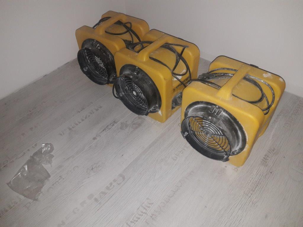 Durch den kombinierten Einsatz von Bautrocknern mit Ventilatoren können Sie die Austrocknungszeit um die Hälfte verkürzen: Jeder Trockner wird dabei durch einen Ventilator ergänzt, der die Trocknungsleistung und damit die Trocknungsdauer signifikant beeinflusst.